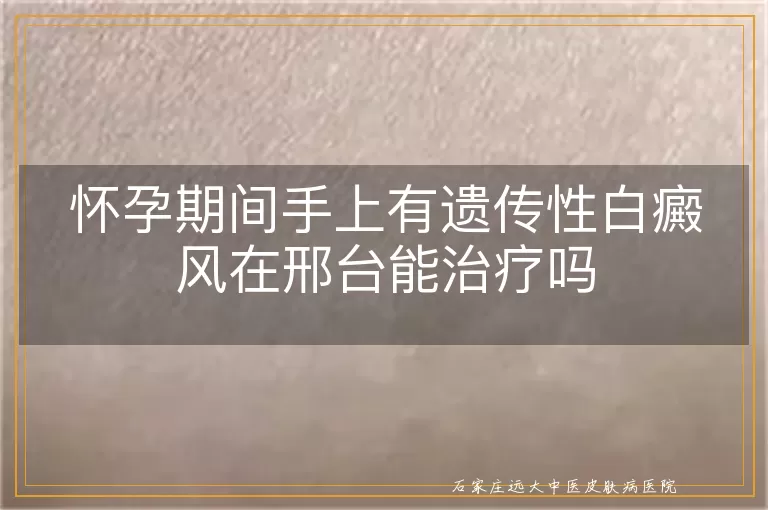 综上所述,怀孕期间手上有遗传性白癜风在邢台地区是可以治疗的。但患者应在医生指导下,根据自身病情选择最合适的治疗方法,并遵循治疗原则,确保母体和胎儿的安全。