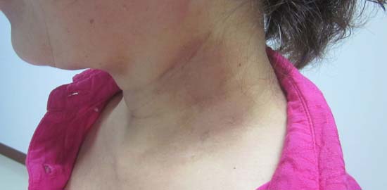 5年前梁阿姨发现自己脖子上出现了几个小白点,并没有多在意,但半个月后,小白点长大了点,颜色越来越白,跟周围的皮肤相比,白斑很引人注目,于是梁阿姨去镇上的医院看医生,医生根据白斑的症状判断出是白癜风,现在扩散的不是很多,并建议她快点治疗。