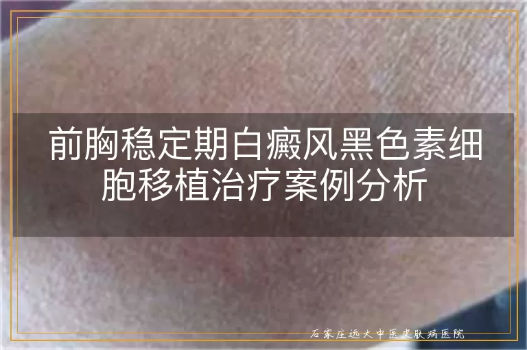 白癜风作为一种常见的色素脱失性皮肤病,其发病机制复杂,治疗手段也多种多样。在众多治疗方法中,黑色素细胞移植因其直接补充皮损处缺失的黑色素细胞,恢复皮肤正常色素,而成为治疗稳定期白癜风的有效手段之一。本文将深入分析一例前胸稳定期白癜风患者接受黑色素细胞移植的治疗案例,探讨其治疗效果及可能的影响因素。