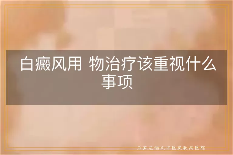白癜风的发病原因非常多,因此针对白癜风疾病的治疗方法是不一样的,白癜风用 物治疗该重视什么事项?治疗是因人而异的,这个时候需要患者要有一个坚定不移的心,白癜风患者应该到正规的医院,规范治疗,避免去不正规的医院,误诊误治造成白癜风的危害。